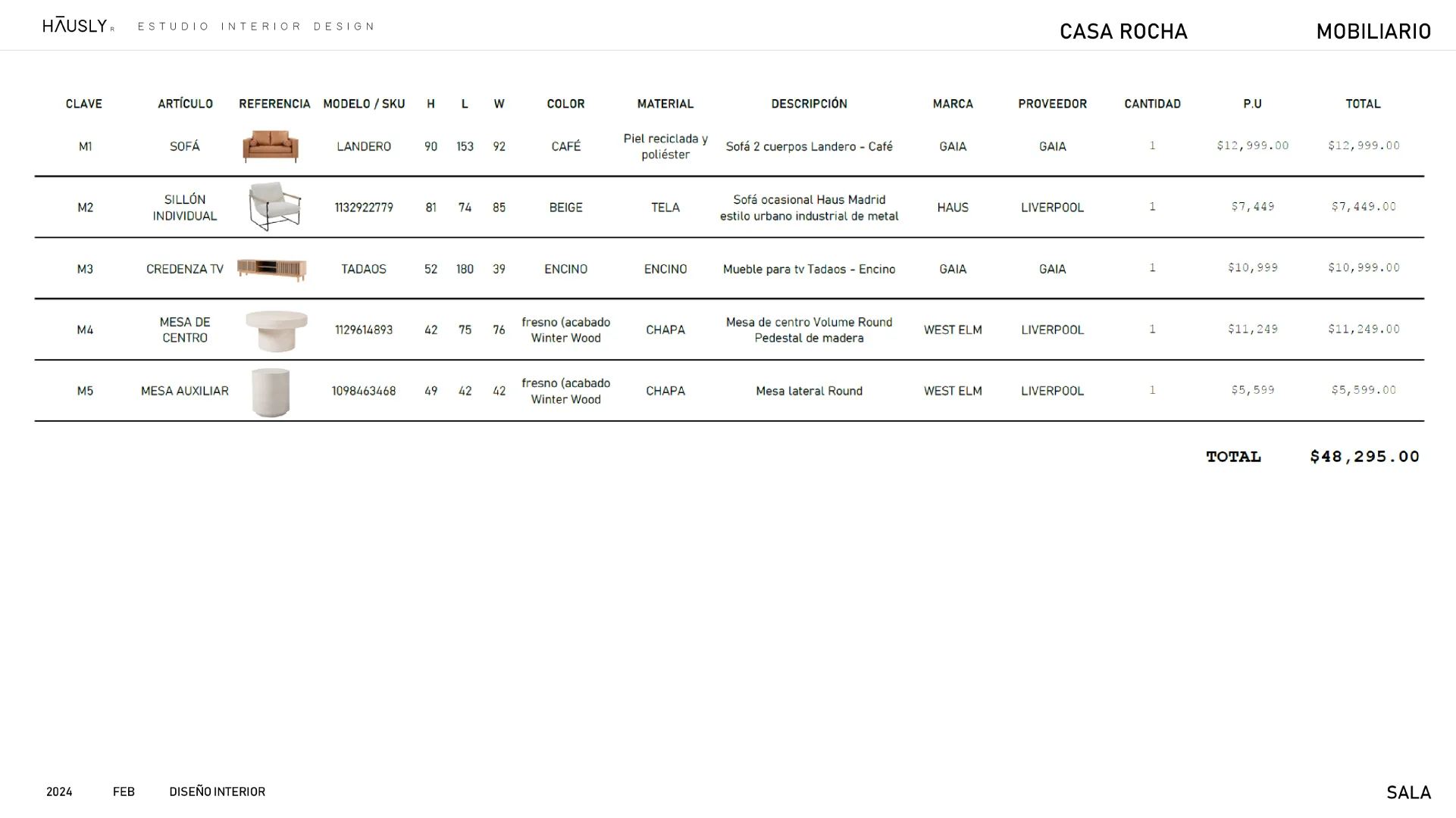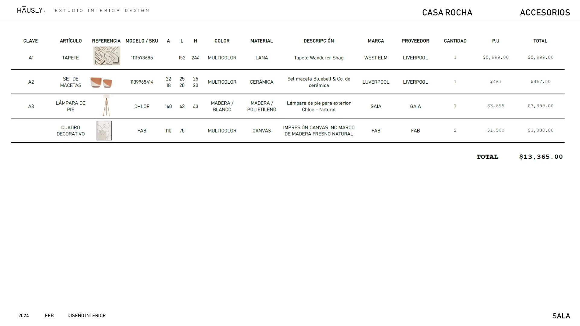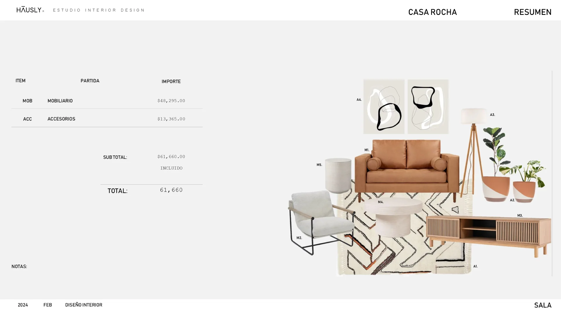 Seleccionaremos los ítems para renovar tu espacio, indicando su ubicación, especificaciones y costos según tu presupuesto.